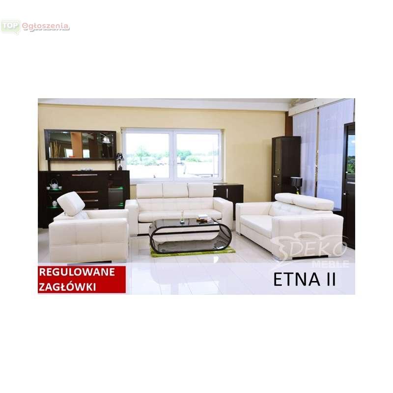 Prostą linię mebli Etna wzbogacają efektowne pikowania po bokach oraz praktyczne zagłówki. Perfekcyjne wykonanie, prosty, subtelny kształt i chromowane nóżki  sprawiają, że komplet wygląda wyjątkowo.