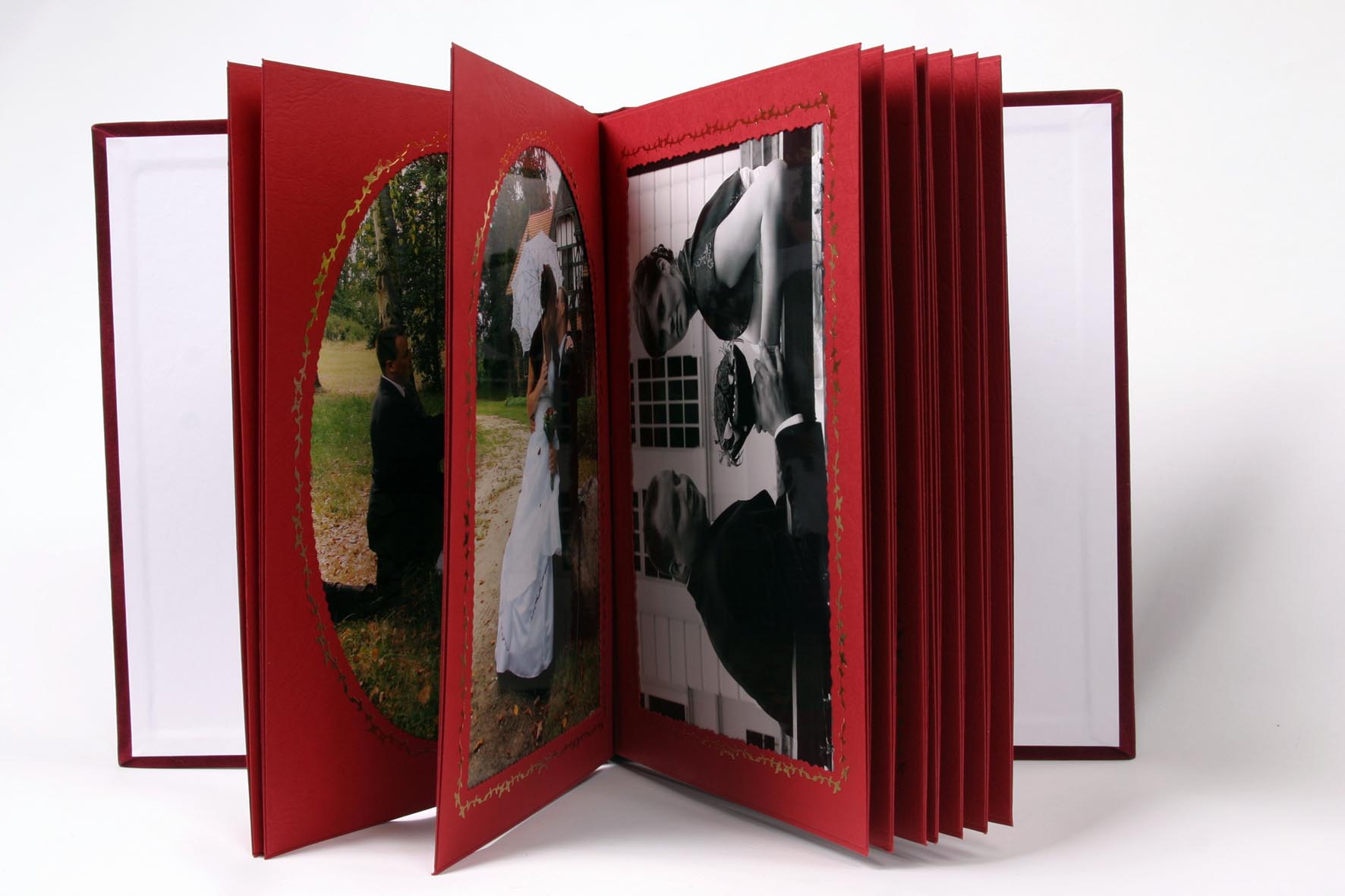 Okładki albumu są twarde wykonane z zamszu koloru czerwonego ze złotym