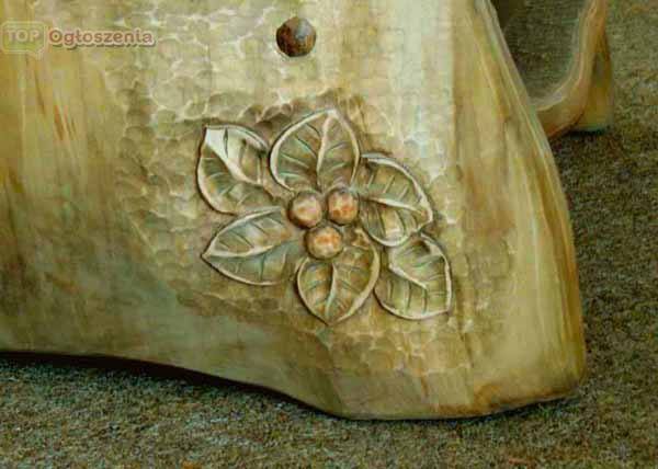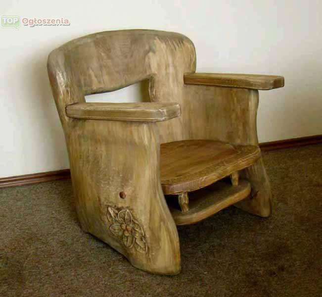 Polecamy niepowtarzalny fotel, wykonany w całości z litego drewna – drugi taki nie istnieje! Fotel został ręcznie wycięty z masywnego pnia drzewa (średnica ponad 70 cm), ozdobiony motywem rzeźbionym, bejcowany i patynowany. Z pewnością stanie się oryginalnym akcentem w Państwa mieszkaniu.